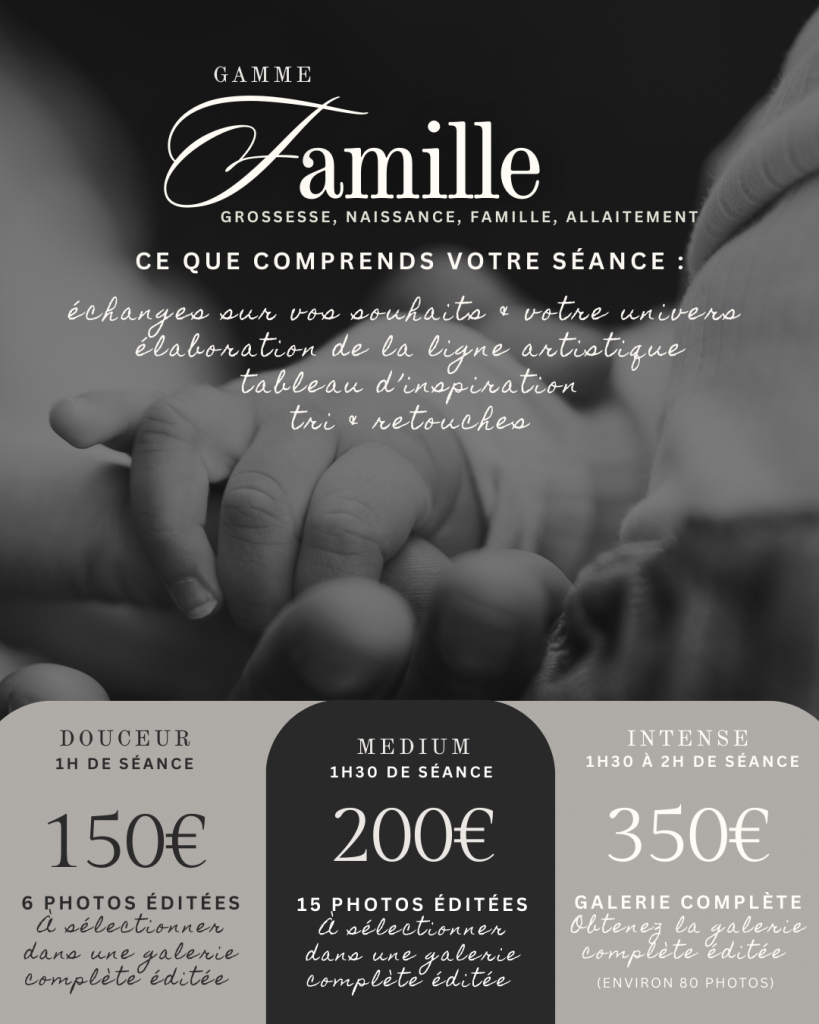 GROSSESSE : immortalisez votre magnifique ventre tout rond qui porte la vie. À deux, avec vos enfants déjà la, avec vos parents, entre mère et fille,… créons de jolis souvenirs de ce moment avec les personnes qui vous sont chers ! Parce que ce moment n’arrivera qu’une fois, chaque grossesse est unique, votre séance photo le sera aussi.